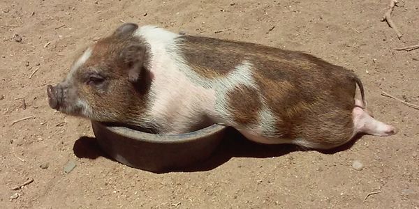 I'm the best Pig-Daddy and calm, cool, loving breeding stock there is. As far as micro mini pigs go, some say I'm a real teacup pig, in a dog dish. How big do teacup pigs get? I'm smaller than Kitty. I'm not 30 lbs yet, and not quite full grown. My mom and dad are small too. My dad's cool and gentle like me.